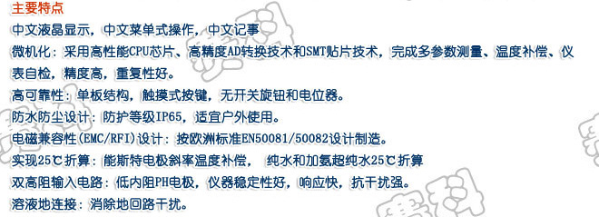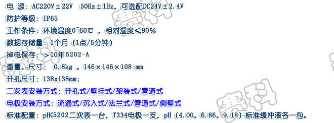 产品概述:产品描述: 测量范围:-2~16.00pH,-1999~+1999mV,0~99.9℃;分 辨 率:0.01pH,0.1mV,0.1℃; 精 度:±0.02pH,±0.5mV,±0.3℃;可广泛应用于火电、化工化肥、冶金、环保、制药、生化、食品和自来水等溶液中pH值的连。